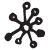 A bathroom with a white textured wall, a large arched mirror, black fixtures, and modern decor. A framed art piece of a potted cactus hangs on the wall, and a white towel is on a black towel ring. The sink has a small candle, a soap dish with soap, and a pump bottle on it. The lighting fixture is black with a white bulb, and the bathroom has a minimalist style.